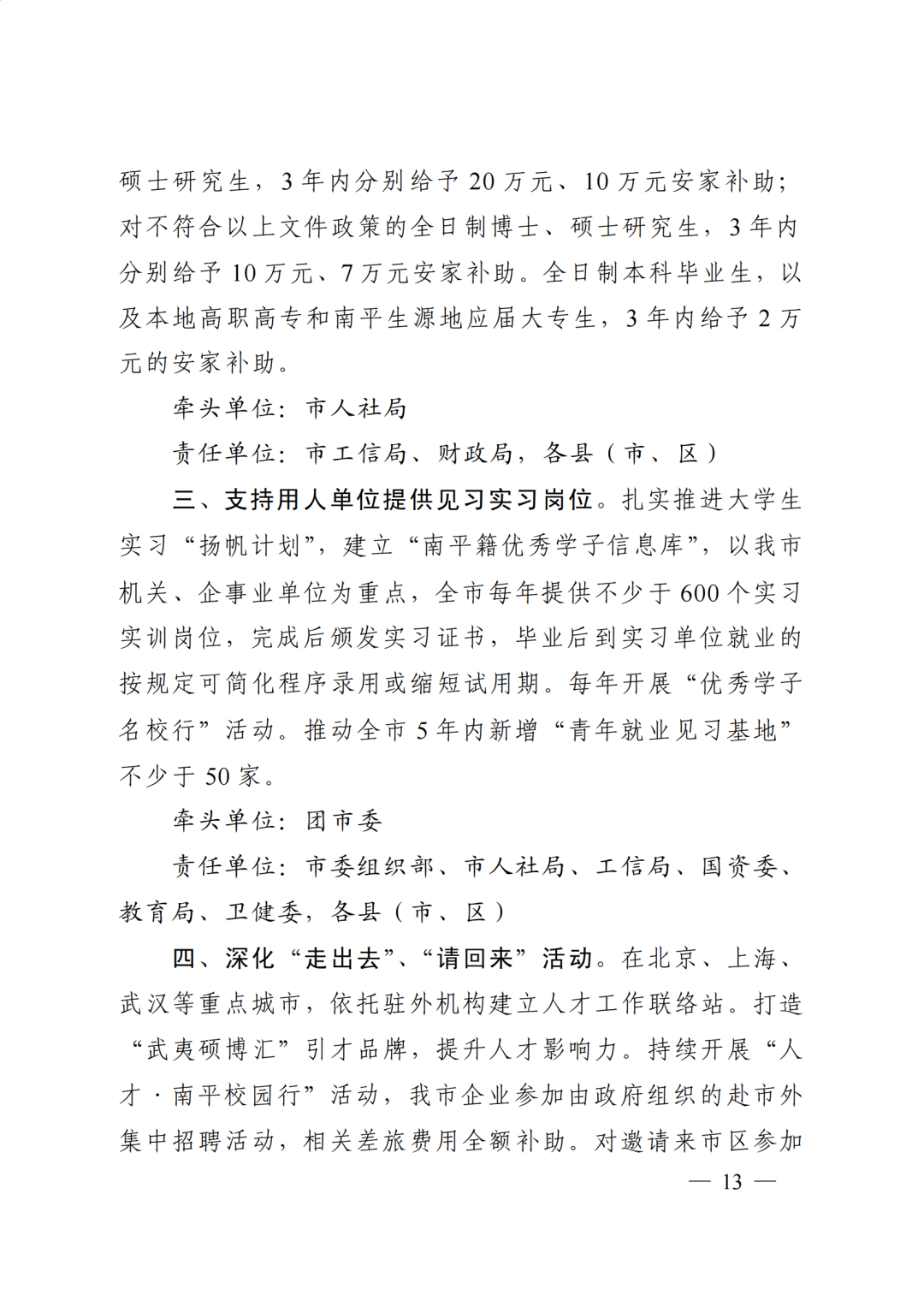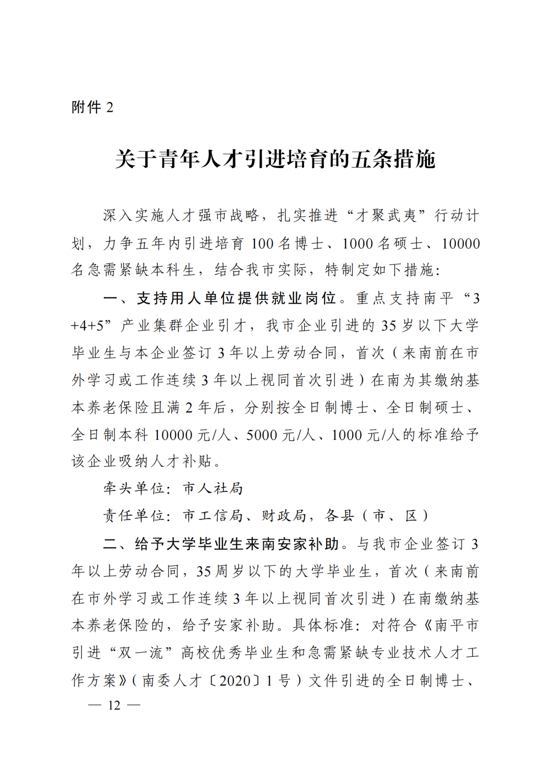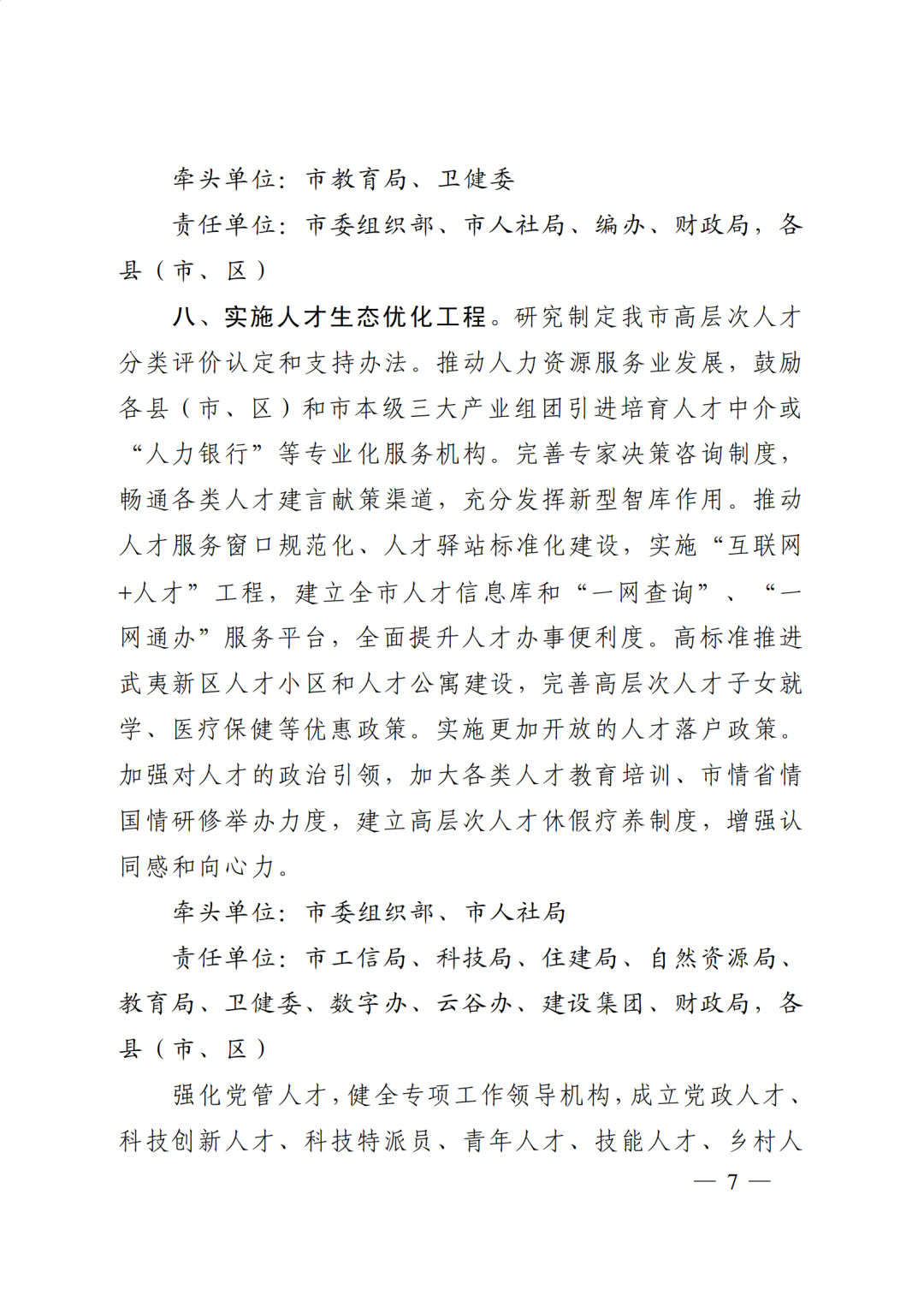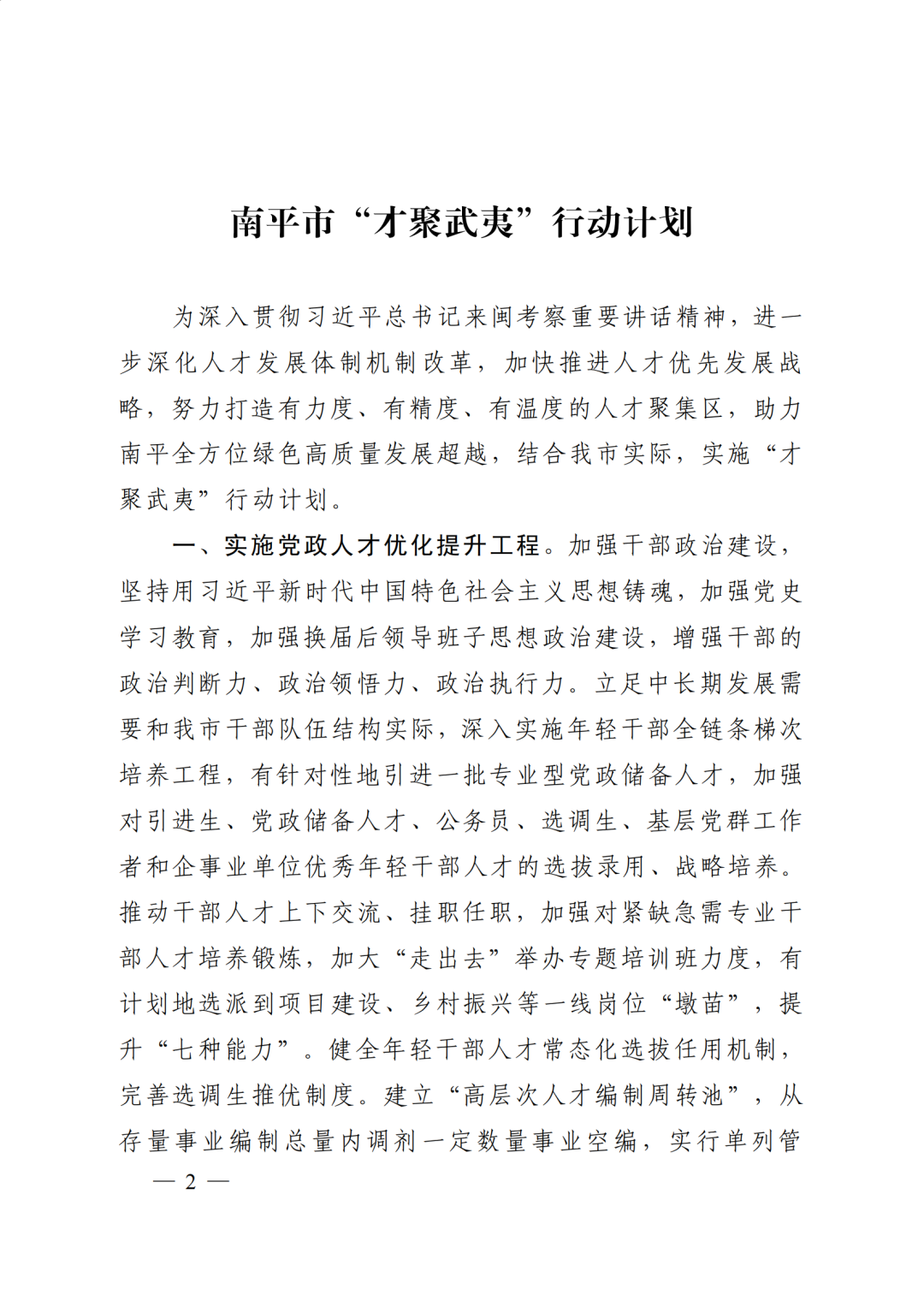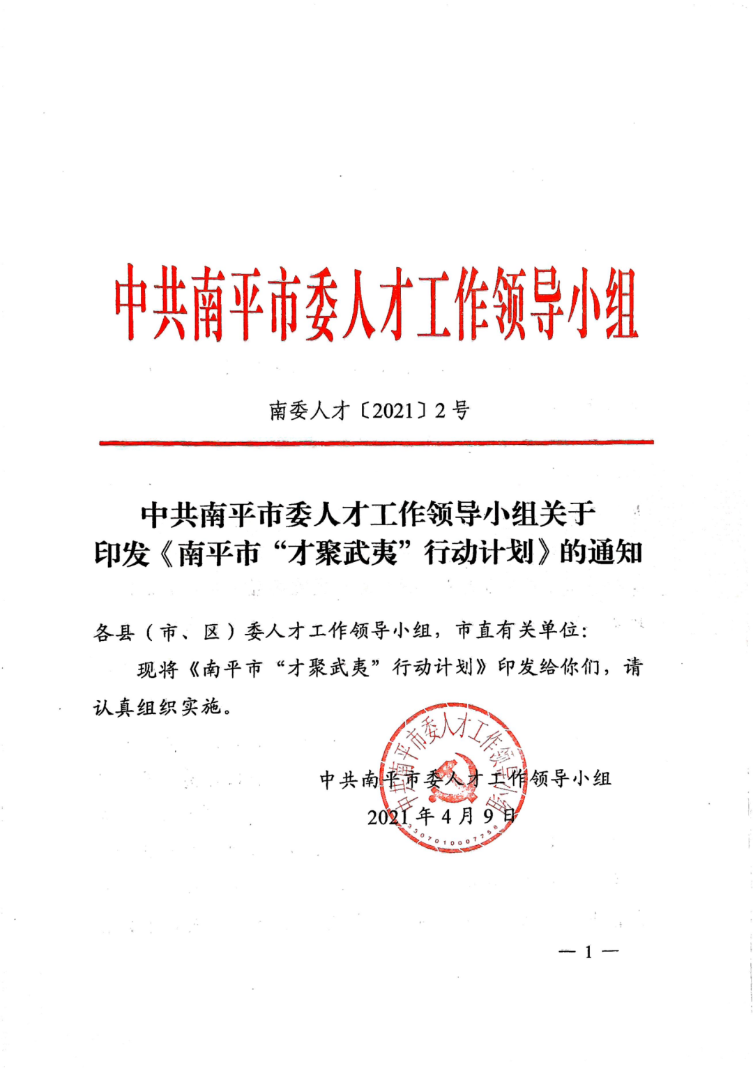 南平市“才聚武夷”行动计划(南委人才〔2021〕2号)