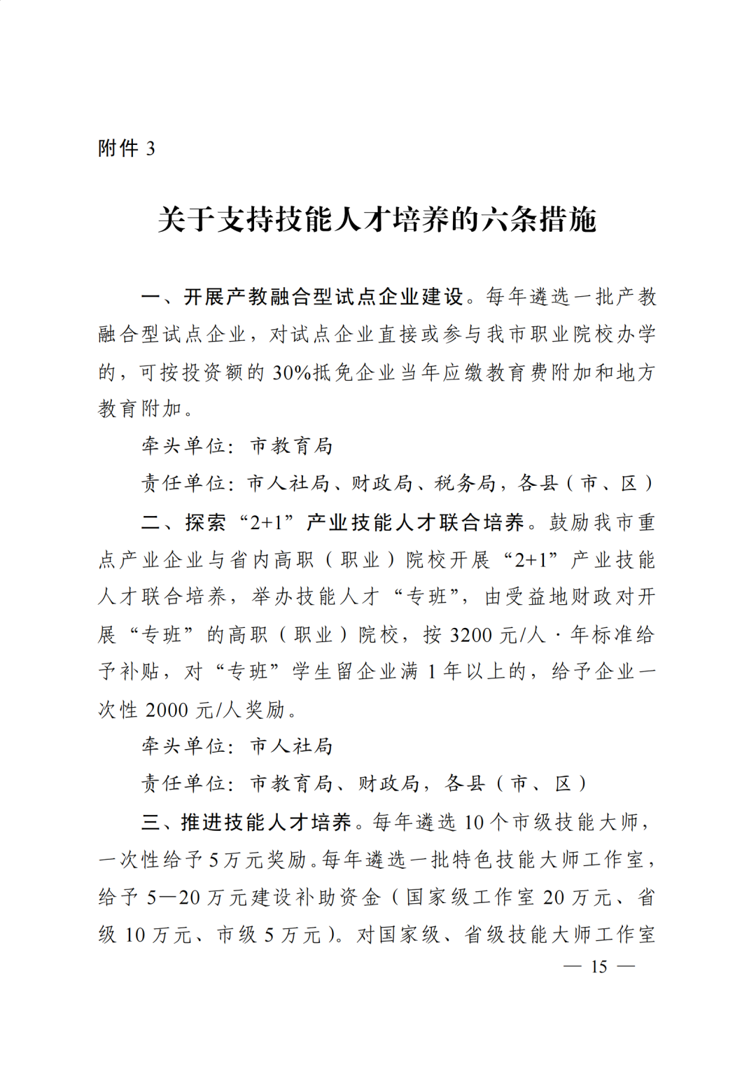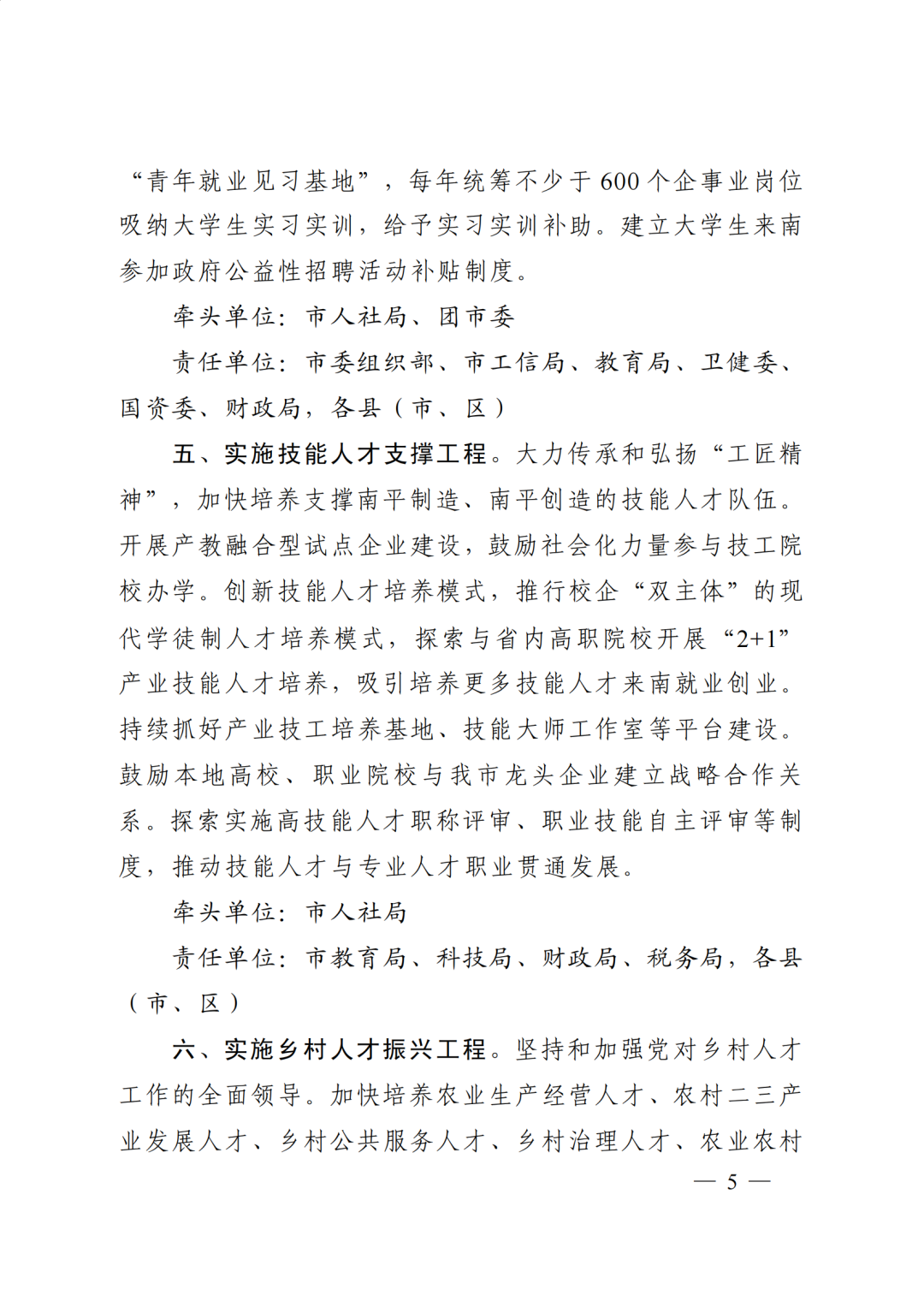 南平市加强新时代高技能人才队伍建设的若干措施(南委人才〔2023〕3号)
